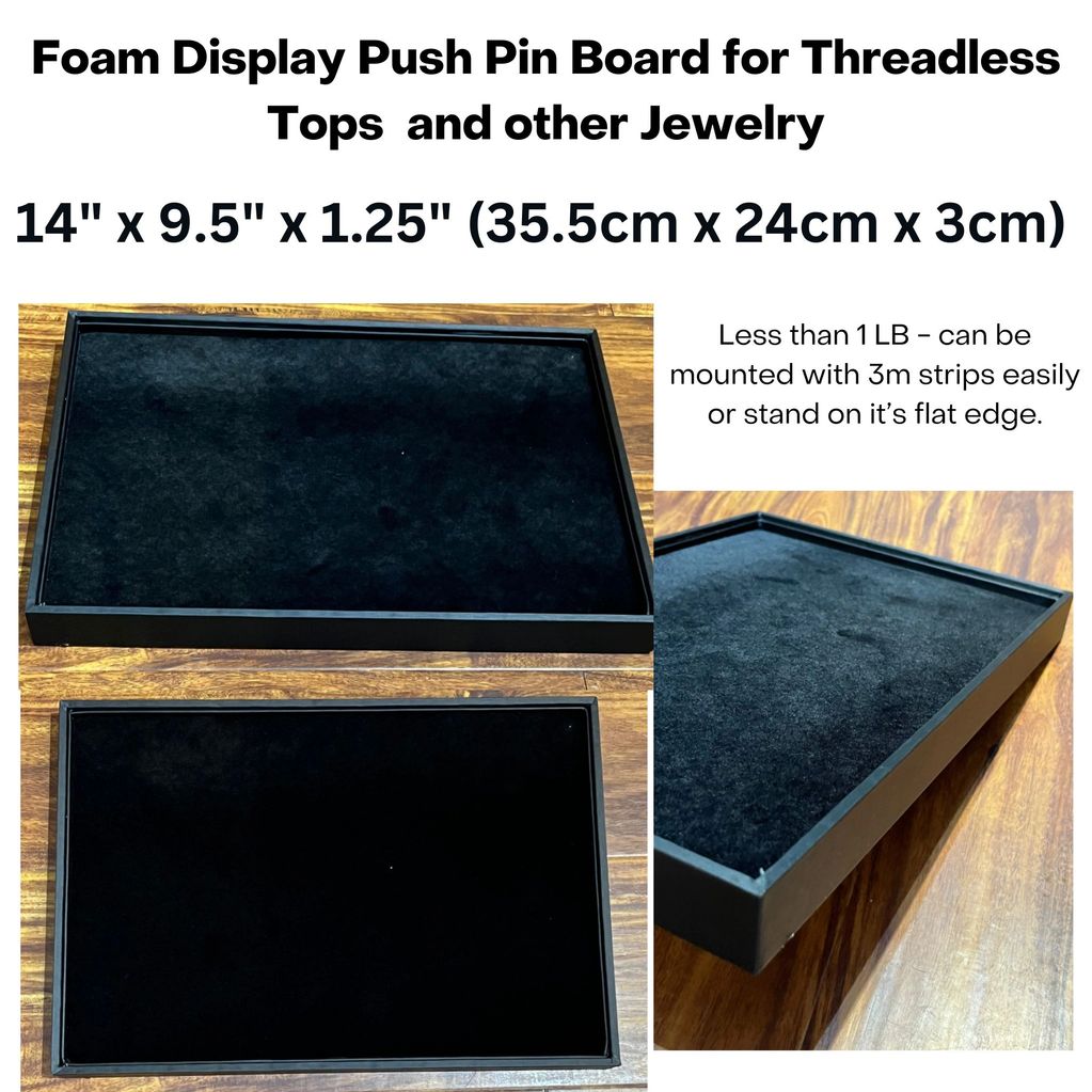 This foam board display is perfect for poking in threadless pushpin tops and stud earrings. They can be rearranged easily. Board is 14" x 9.5" x 1.25" and can be rotated to suit. It has a flat back and is less than 1 pound in weight so command strips is a viable option to hang on a wall. When customers can easily see their selection of jewelry choices, you will see an increase in sales!