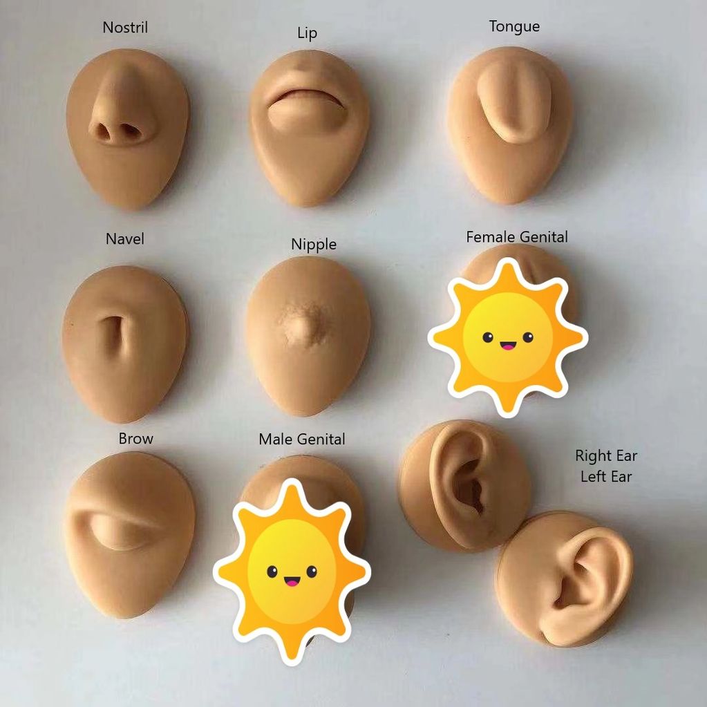 These silicone body parts fit securely into a display stand. Excellent for practice piercing and or displaying jewelry. Mix and match for volume discounts. Each part comes with a clear stand 8cm wide x 12cm tall.