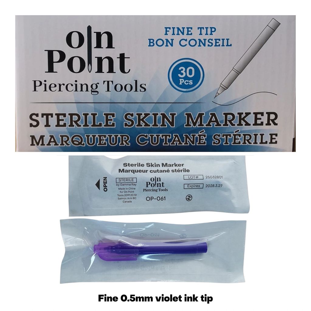 Safely mark skin with less mess. Each pen is autoclaved. Box of 30. Violet ink 0.5mm fine tip.