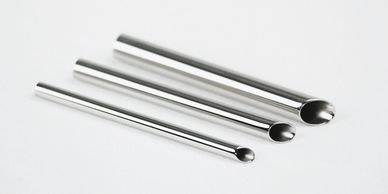 Stainless steel or heat resistant glass receiving tubes. Both very durable and autoclave safe.