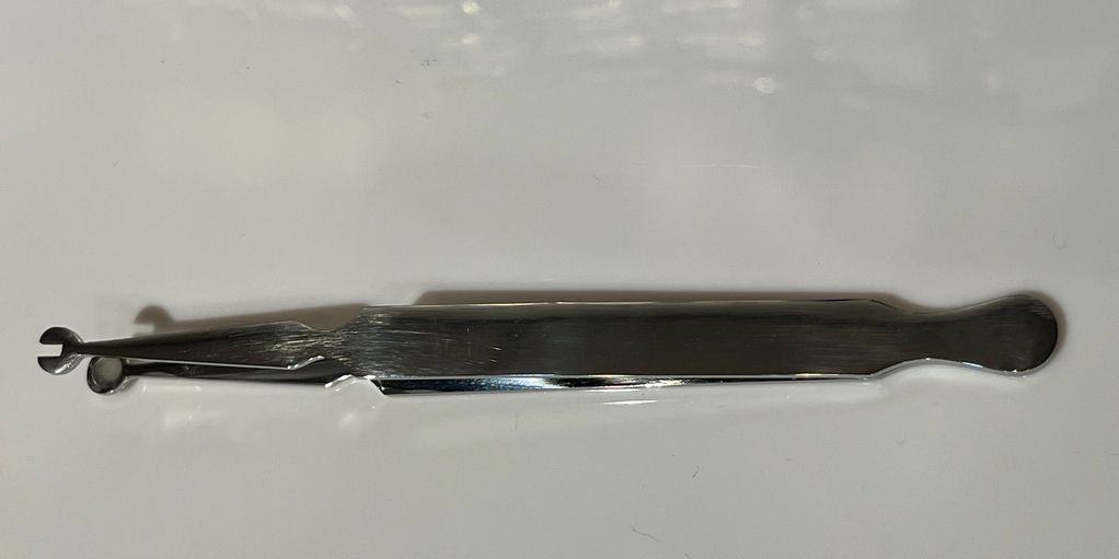 This handy tool has a slotted end to help hold flat back labrets. It is 12cm overall length.