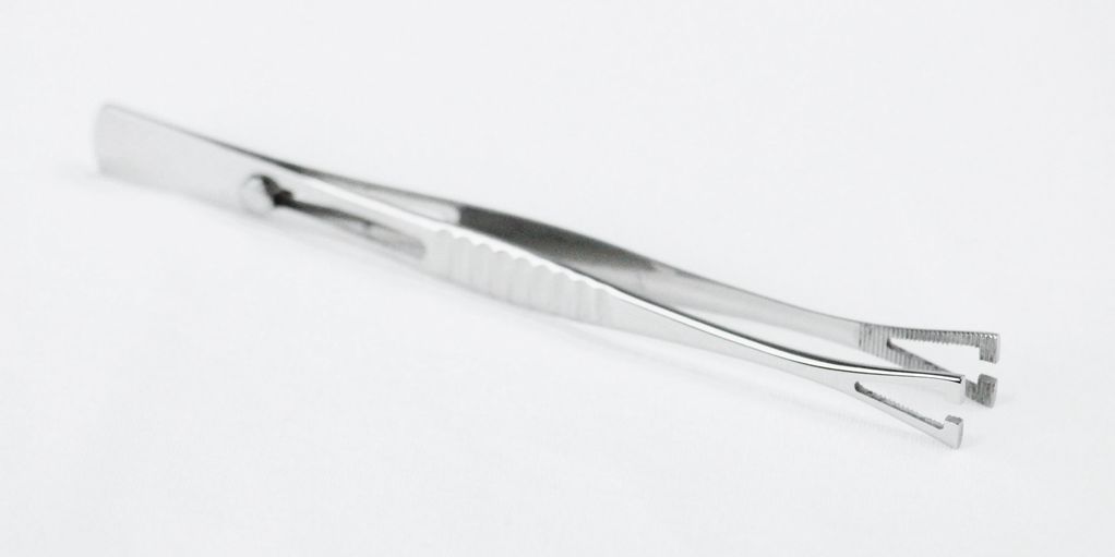 Made from implant grade stainless steel these handy mini slotted forester tweezer clamps have small jaw opening of 7mm long x 5mm with a 2mm opening at the slots. A nice, light quick way to secure many small piercings such as nostril and tragus.